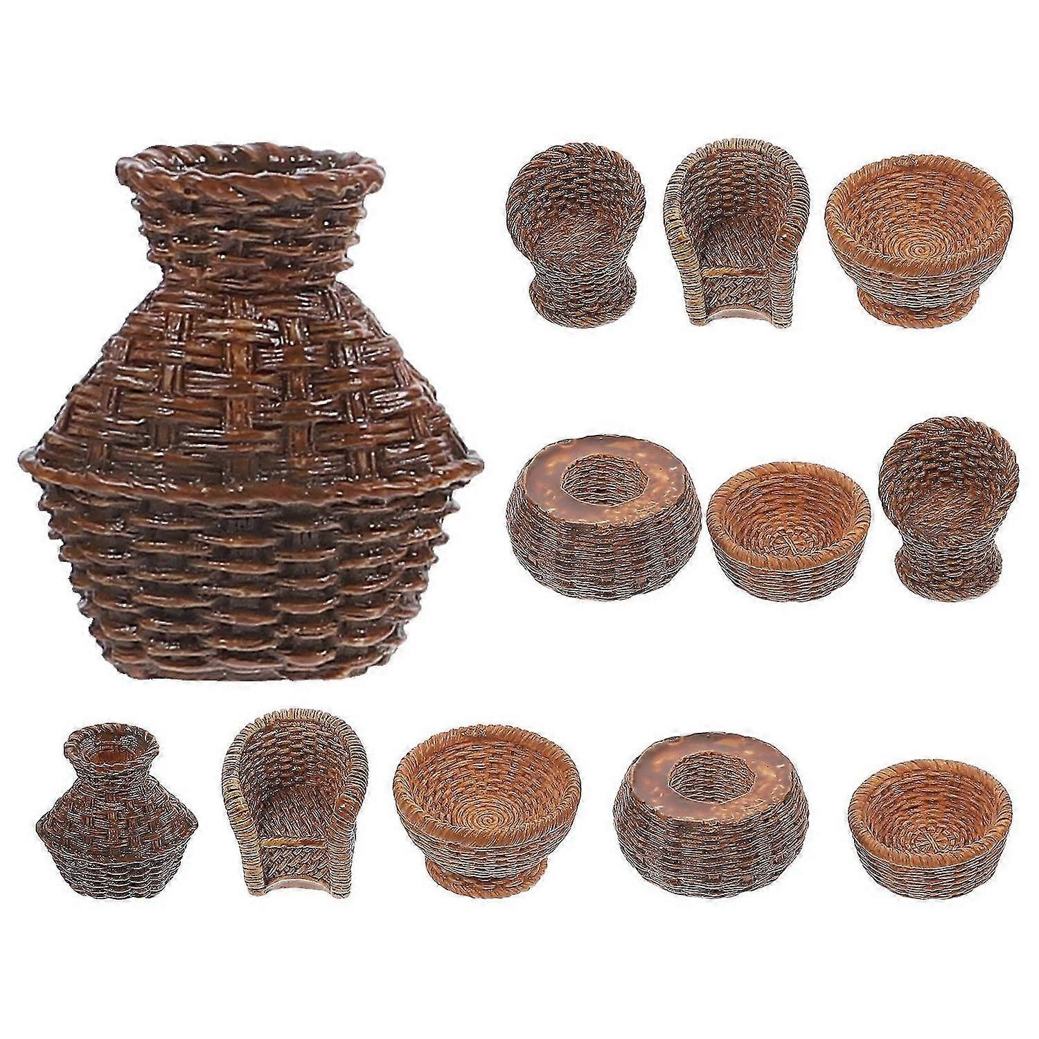 12Pcs Miniatures Basket Dolls House Woven Basket Mini Basket Dollhouse Decor Miniatures