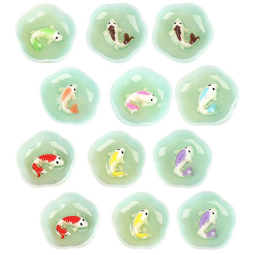 12pcs Miniature Fish Bowl Decor, Mixed Color Resin Goldfish Tank Models for Dollhouse Accessories, Kitchen Table Centerpieces, Landscaping Scenes