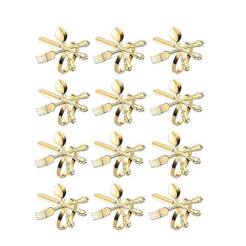12Pcs Metal Knife and Fork Spoon Napkin Rings Holder for Christmas Party Wedding Used for Daily Table Parties Gold
