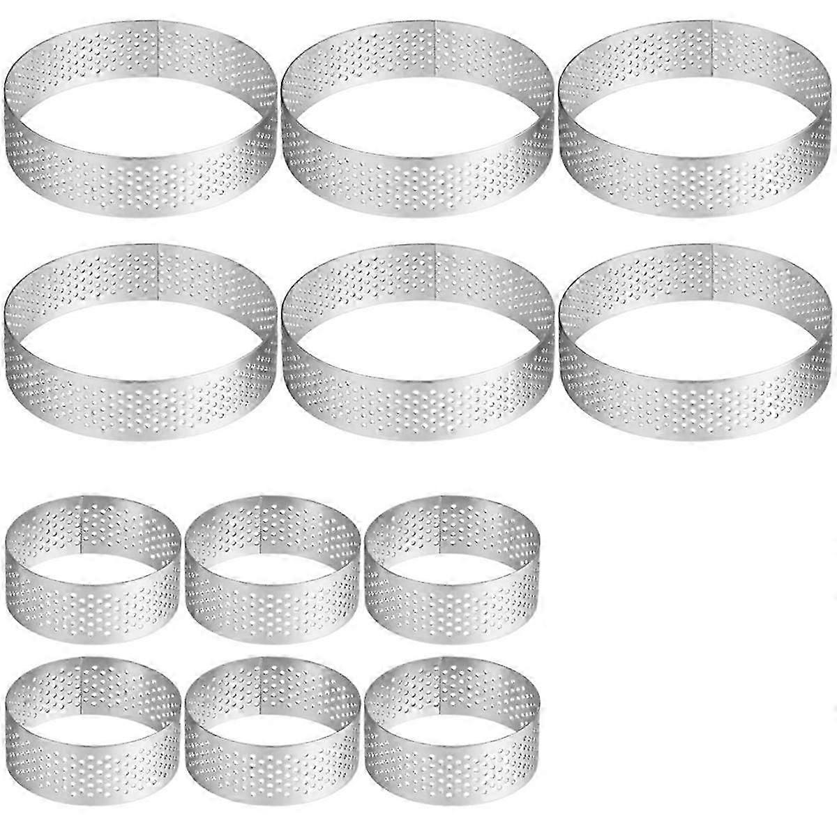 12Pcs Round Tart Rings, 1.97In & 3.15In Stainless Steel Tart Rings, Perforated Cake Mousse Rings, M
