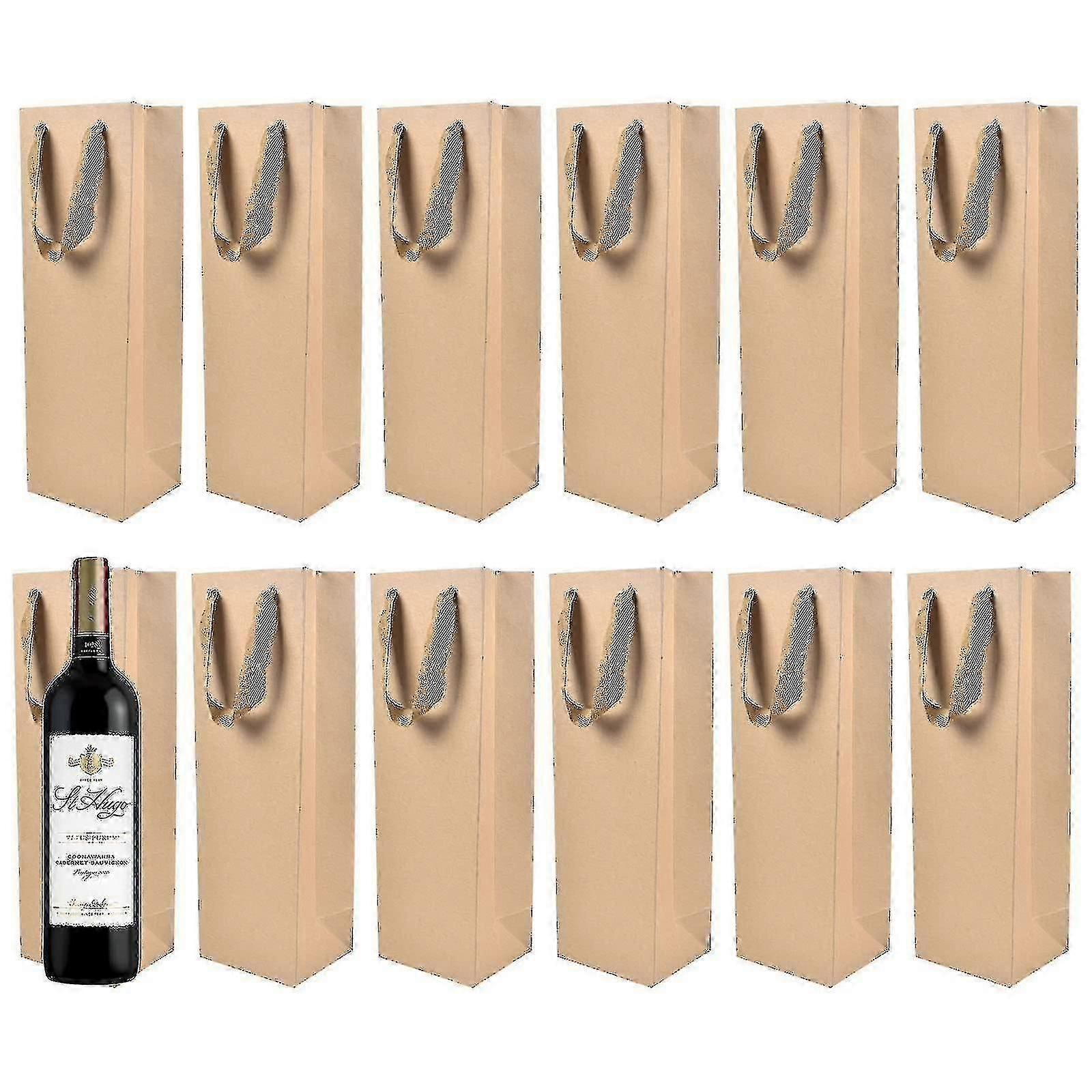 12pcs Wine Gift Bags, Single Wine Bottle Bag, Kraft Paper Champagne Carry Bag, Blank Wine Tote Bag With Handle