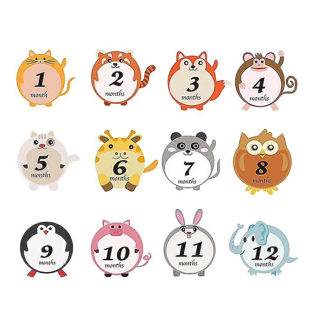 12pcs Month Decals Cartoon Animal Sticker Set for Milestone, Birthday, Shower Party Favors & Decorative Use