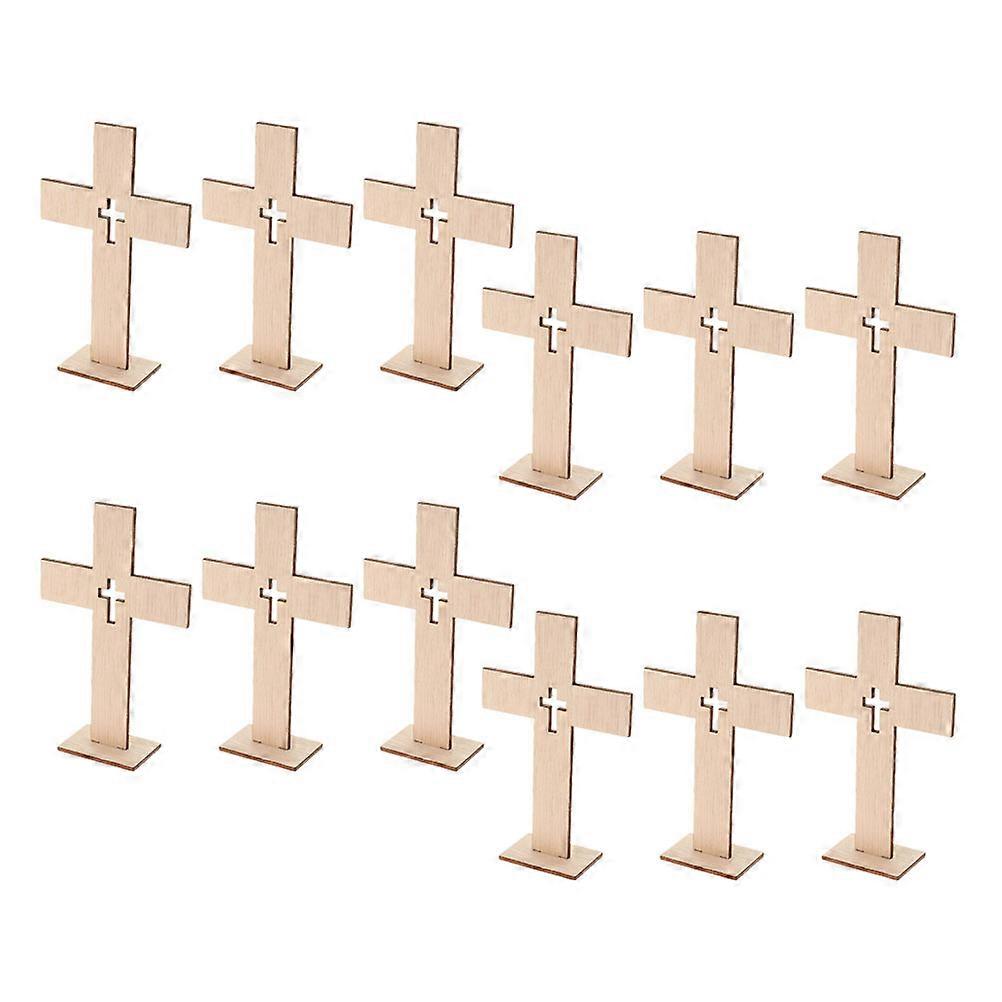 12Pcs Wooden Crosses Decorative Tabletop Centerpieces For Weddings Birthdays And Church Events Elegant Symbolic Ornament Beige