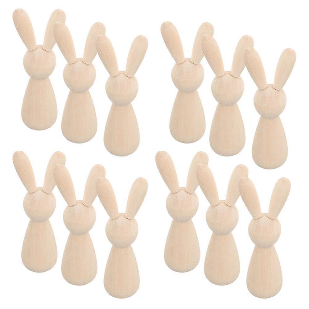 12pcs Unfinished Wooden Mini Rabbit Decorations DIY Craft Supplies Natural Wood Rabbit Shapes for Painting, Easter Crafts, Party Centerpieces & Gifts