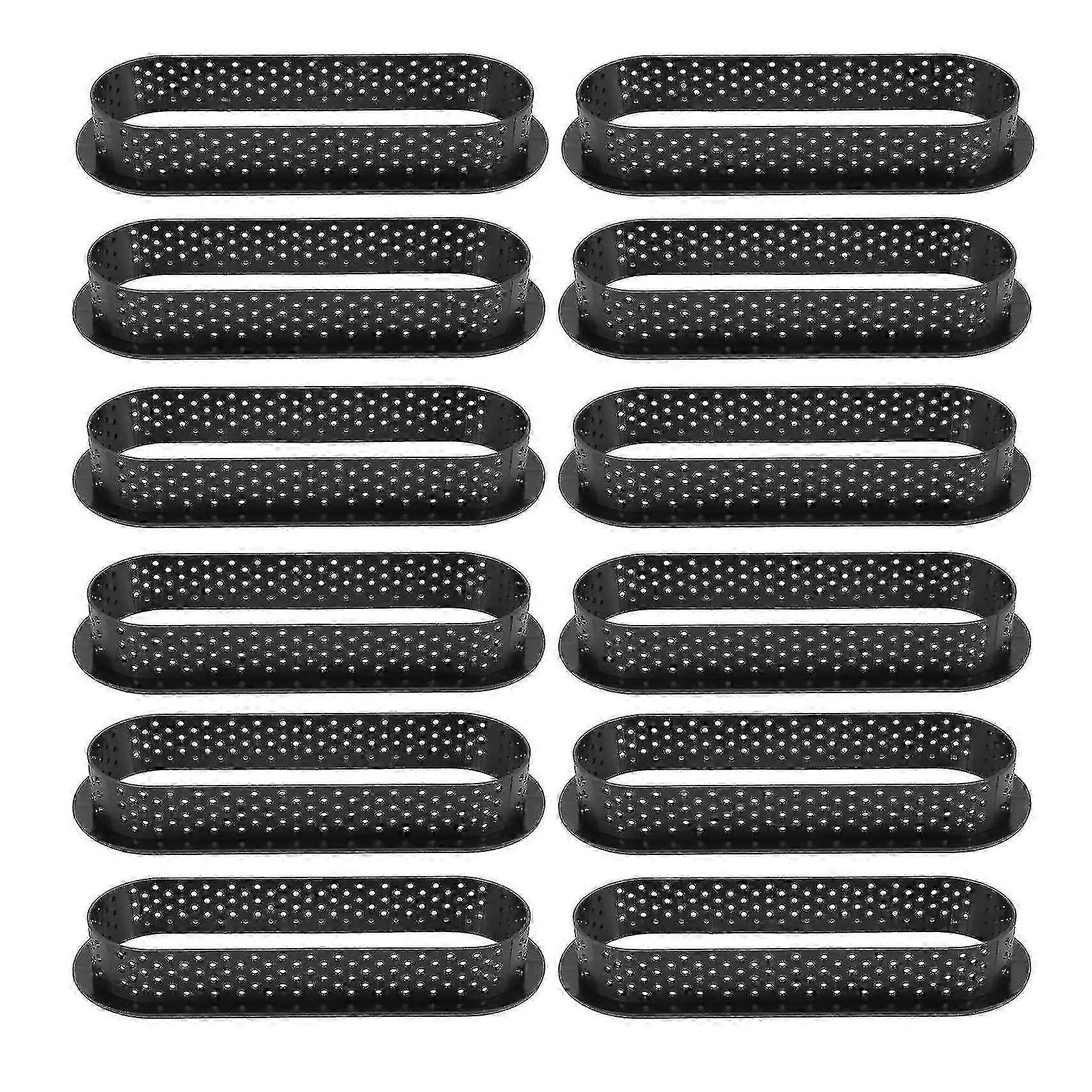 12Pcs Oval Tart Rings Bakeware, Heat-resistant Perforated Non-stick for Cake Mousse Mini Pastry