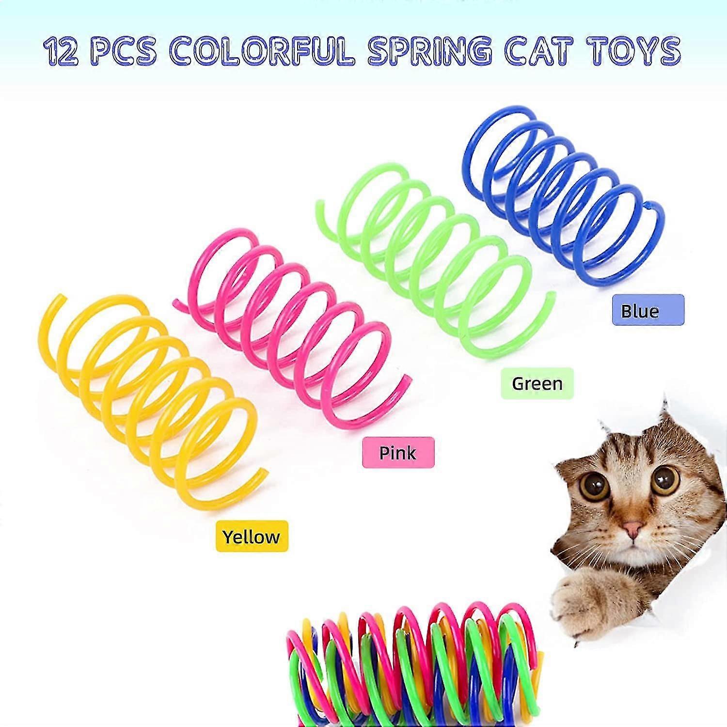 12 Pcs Cat Colorful Springs Toys, Creative Toys For Kittens, Bpa Free Durable Heavy Plastic Interactive Toys To Kill Time And Keep Fit For Swatting, B