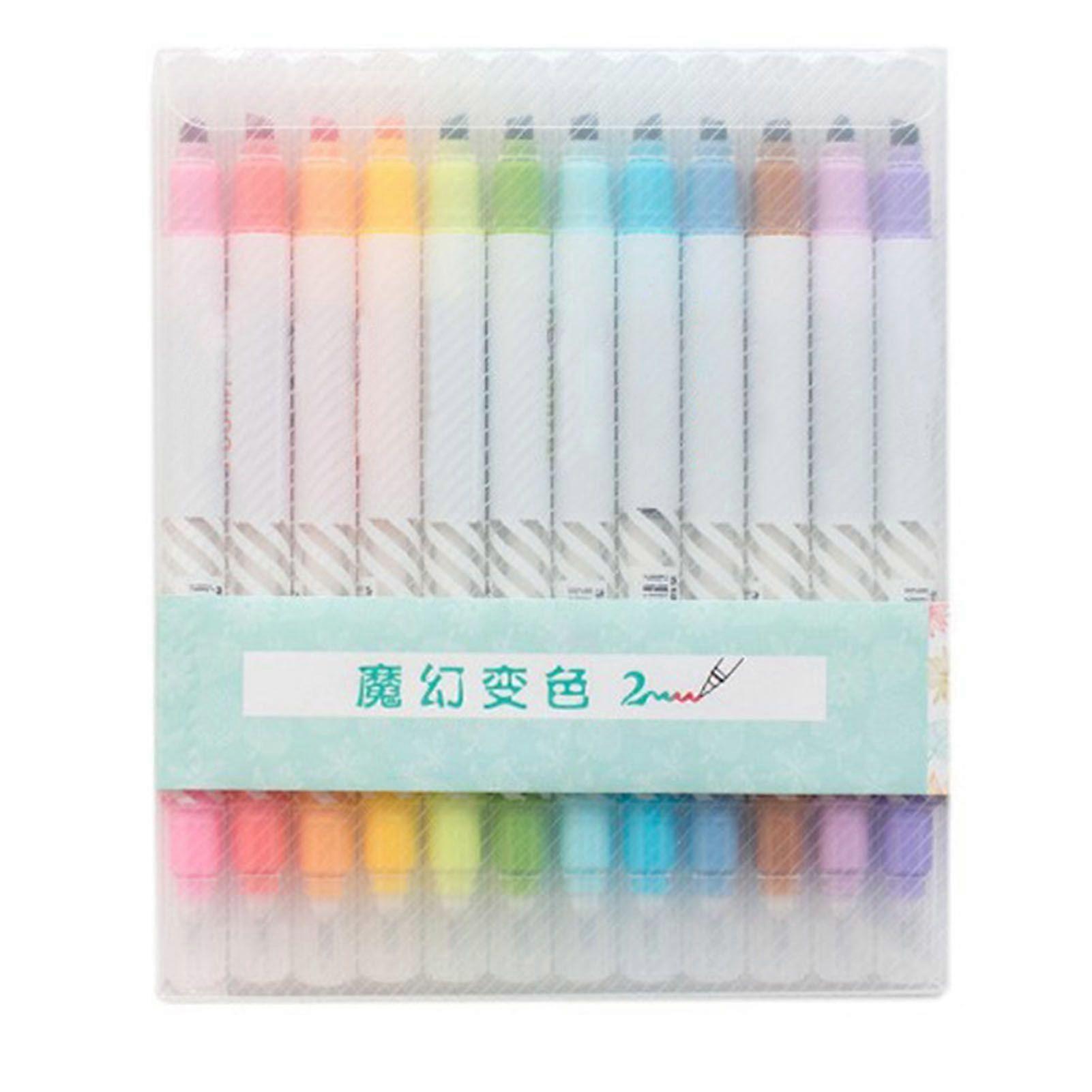 12Pcs Graffiti Markers Double Headed Assorted Colors Gradient Design Note Taking Pen for Card Comic Scrapbook