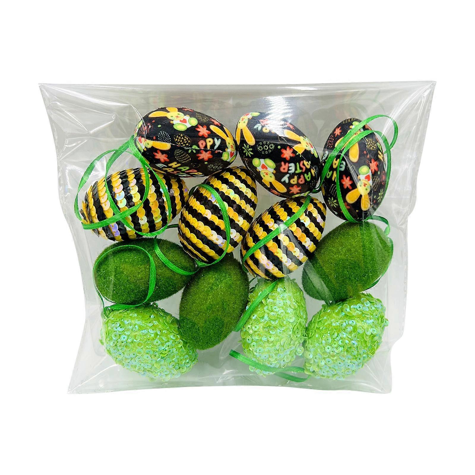 12Pcs Decorative Easter Hanging Egg with Ribbons Easter Tree Ornaments for