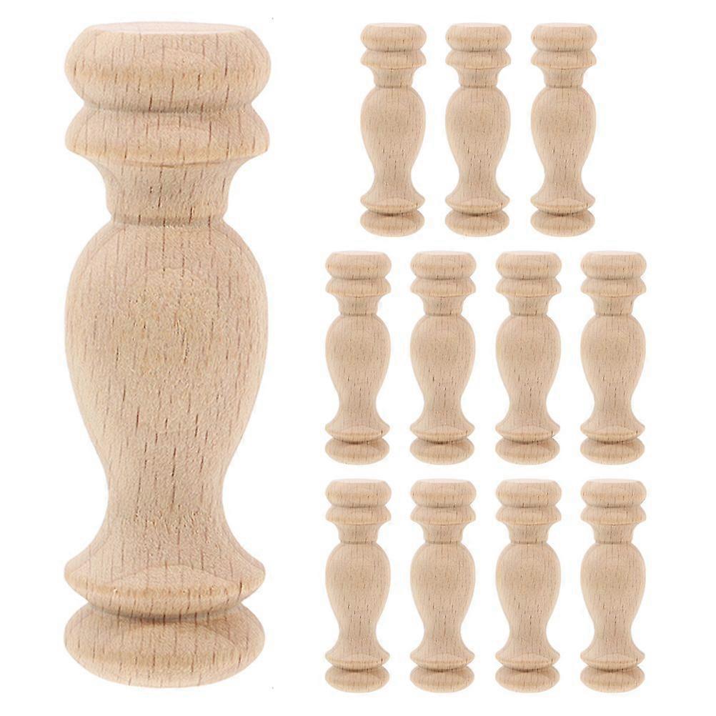 12pcs Decorative Wood Finials: Unfinished Wooden Finials For Bed Post Curtain Rod Staircases Diy Craft For Indoor Home Decoration Beige 6x1.8cm