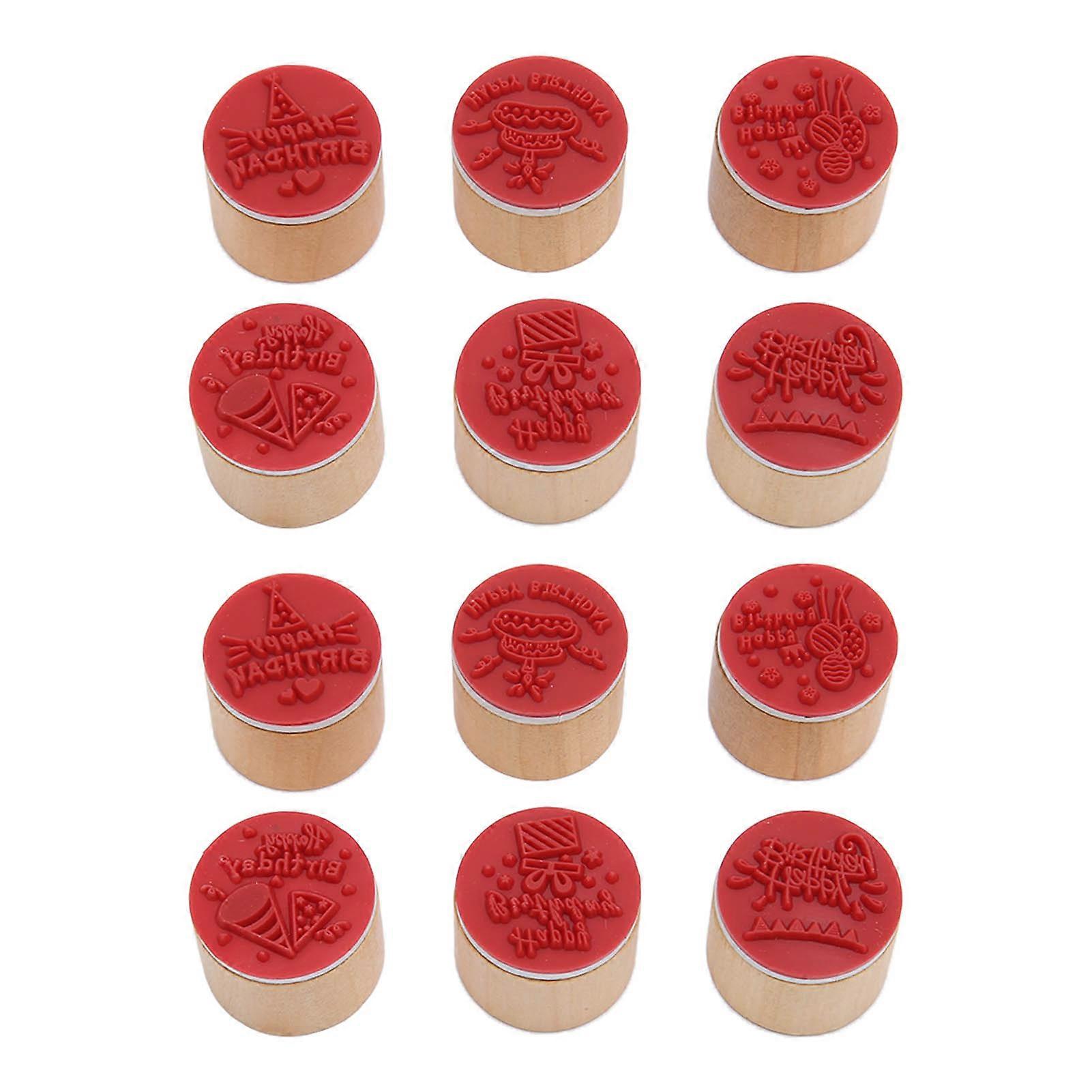 12Pcs Birthday Stamps Wooden Handle Assorted Style Clear Pattern Wooden Rubber Stamps for Card Making DIY Envelope
