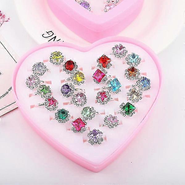 Unique Design Set of 12/24/36 children's rhinestone rings designed to captivate your daughters. Featuring vibrant colors and beautiful patterns, as shown in the image. Adjustable Fit The inner diameter of each ring is approximately 15mm, making them adjustable and suitable for young girls and toddlers. Child-Safe Materials Made from rhinestone, all materials have been tested and are safe for children's use. Perfect Gift Packaged in heart-shaped gift boxes, these rings make a wonderful present for your little princess. Versatile Use These rings offer your daughter multiple styling options for everyday wear and dress-up. They're also perfect for weddings, birthday parties, and more.