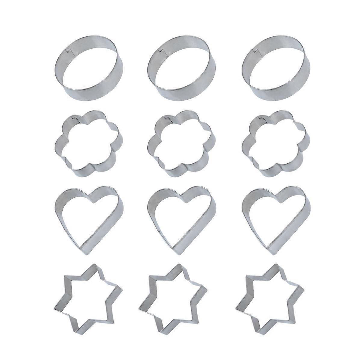 12pcs Metal Biscuit Mold Set, High Temperature Resistant, Food Grade Cookie Cutters for DIY Baking – Star, Flower, Round, Heart Shapes