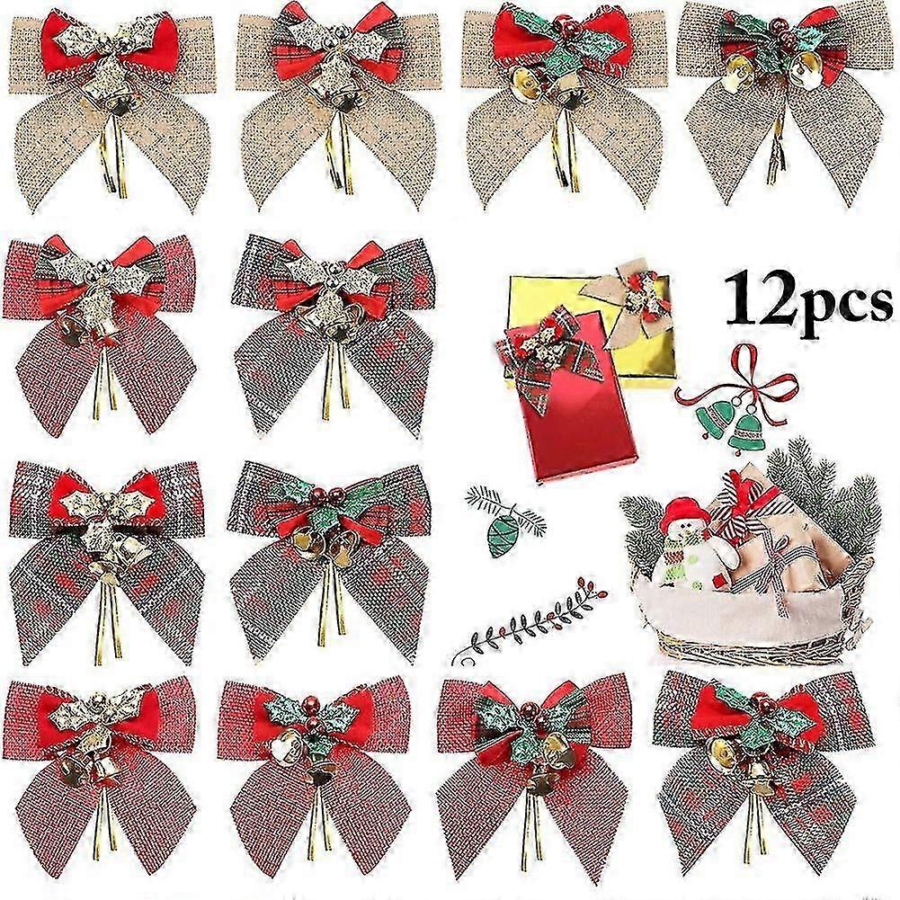 (12pcs) Christmas Bow With Iron Bell Christmas Gift Christmas Wreath Christmas Tree Decoration Supplies 8*8cm