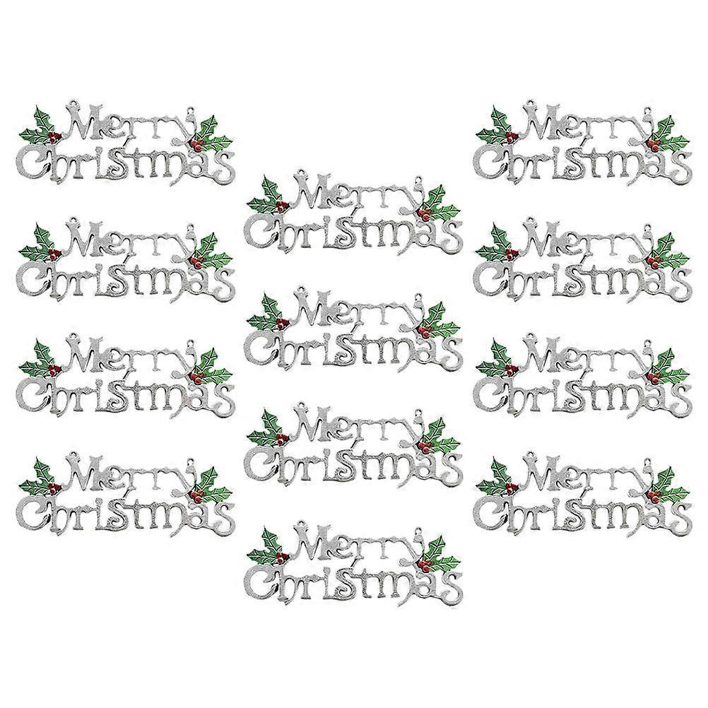 12pcs Christmas Hanging Sign Festive Door Wall Decor Easy Installation Home Office School Store Silver Letter Ornaments