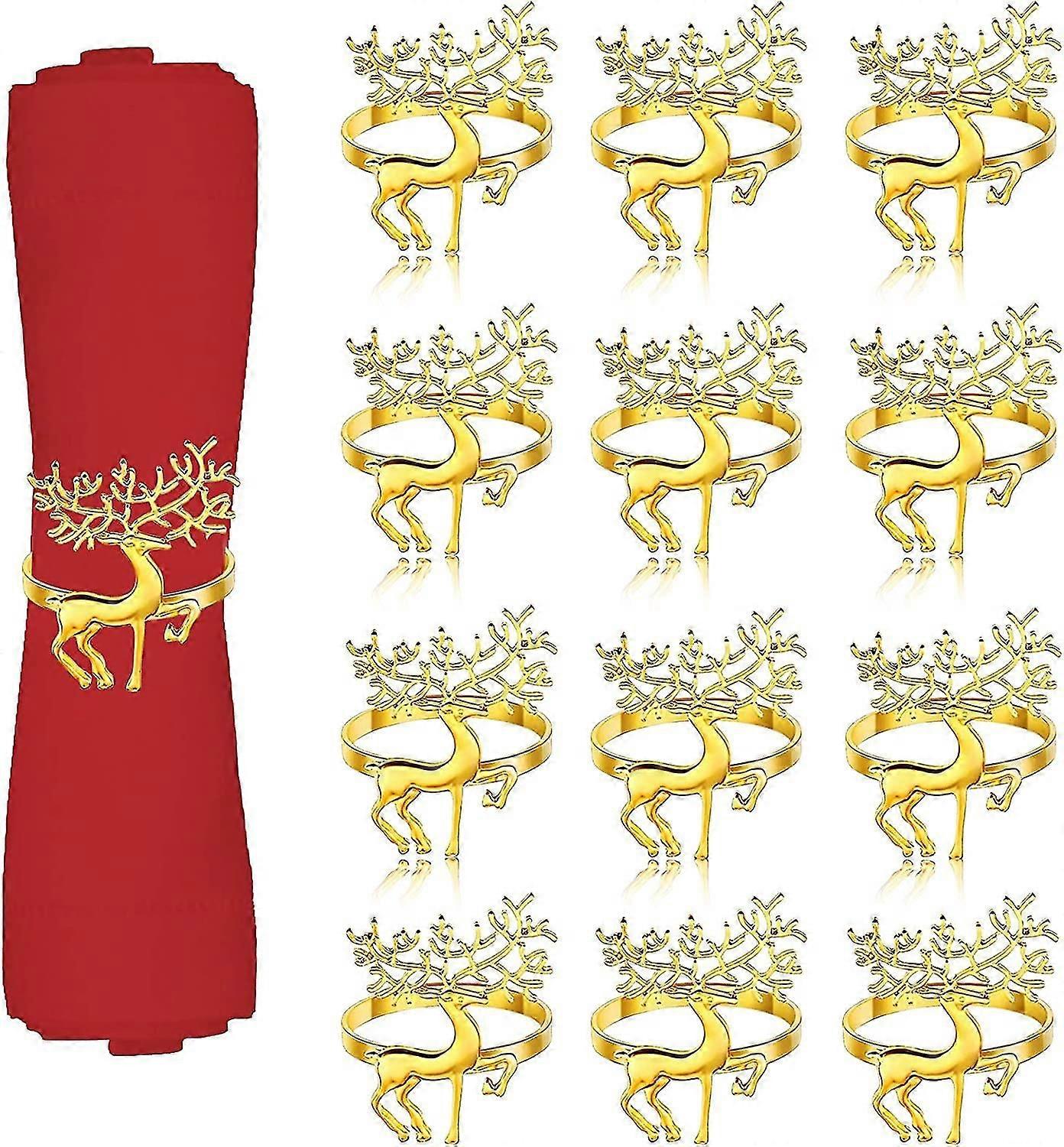 12pcs Christmas Deer Napkin Rings Set (gold)