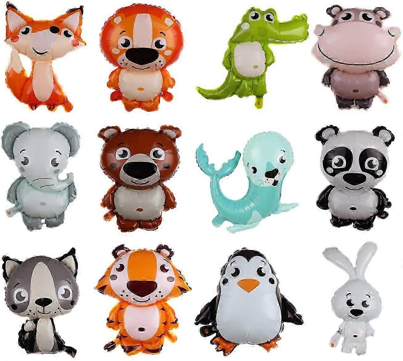 12 Pcs Jungle Safari Animal Balloons , 16 x 18 Inches Animal Balloons for Boys and Girls Jungle Zoo Animal Theme Party Decorations
