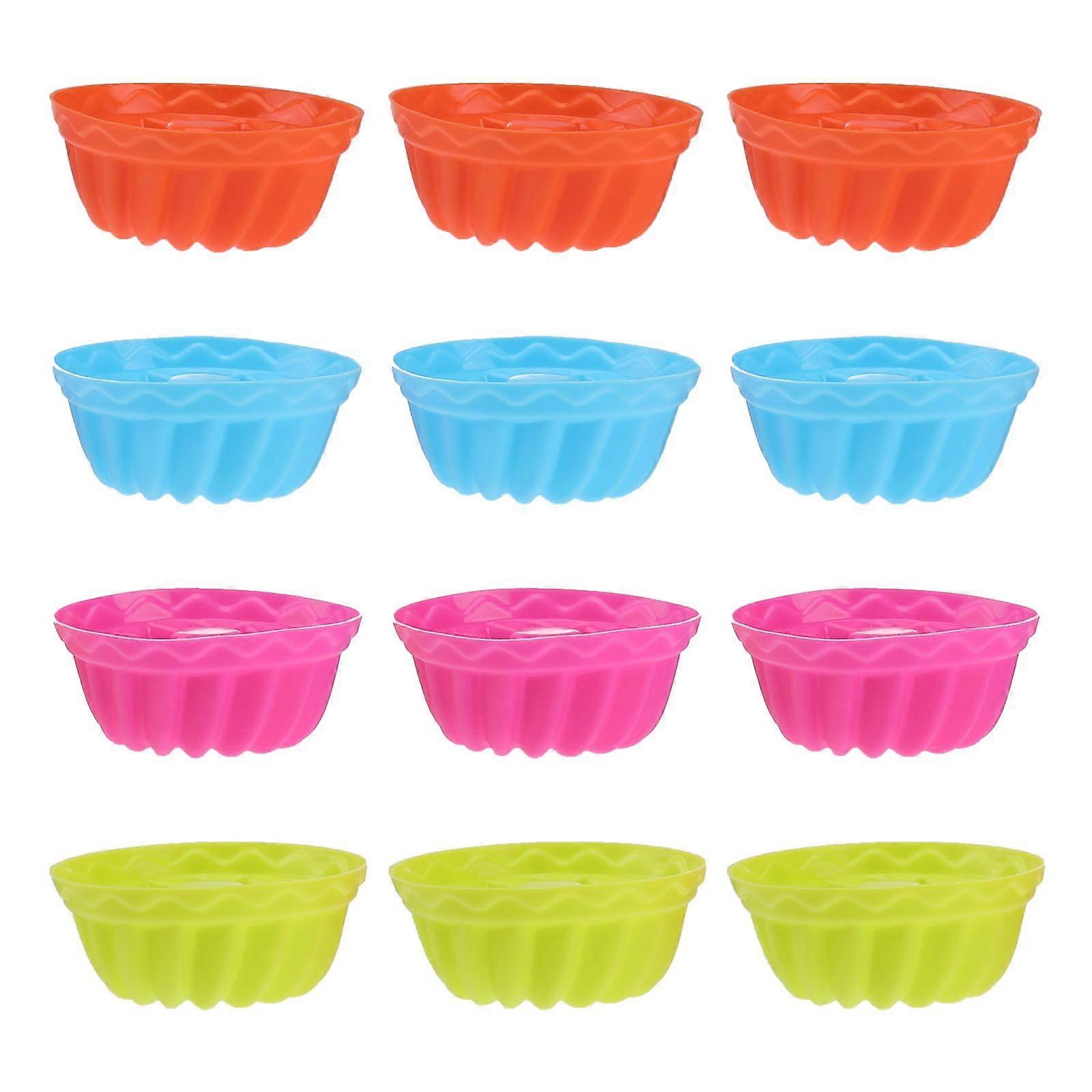 12Pcs Silicone Round Chiffon Cake Mold Silicone Chiffon Dessert Baking Tool (Random Colors)
