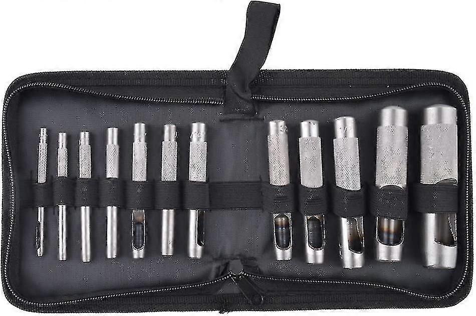 12 Pcs Set Hollow Punch Heavy Duty Leather Punch Cutter Tool With Zipper Kit For Belt, Rubber, Card, Seals, Plastic, Paper, Watch Band
