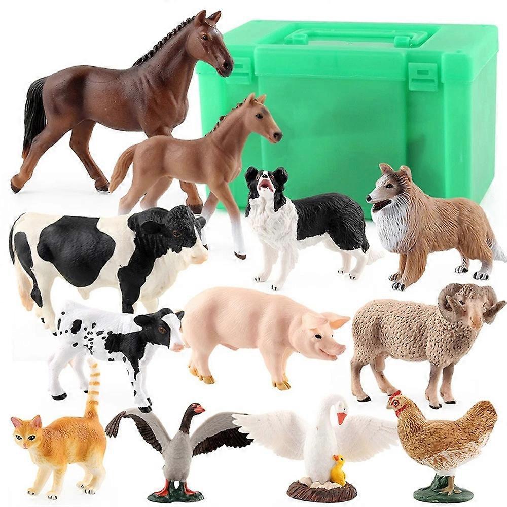 12Pcs Set Animal Horse Sheep Dog Pig Duck Cow Cat Action Figures Model Children Cognize Educational Toys Collection Doll Gift