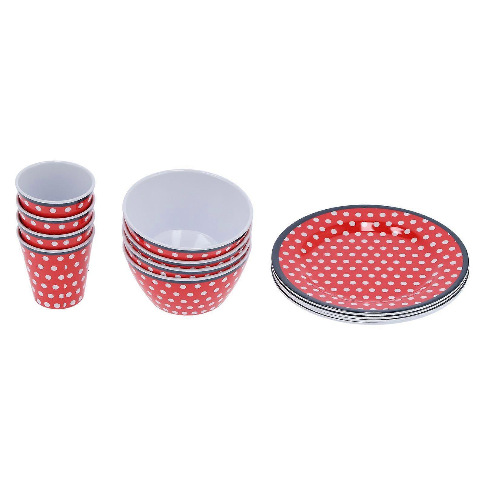 12Pcs/Set Household Tableware Set Red Dot Melamine Cup Bowl Plate for Restaurant Home
