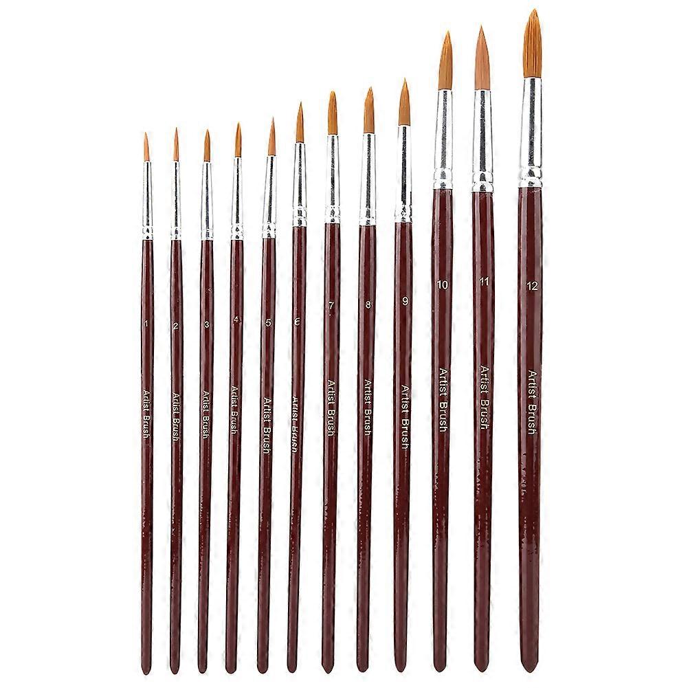 12Pcs/set Watercolor Paint Brush Nylon Hair Art Painting Brush Drawing Supplies(Round tip)