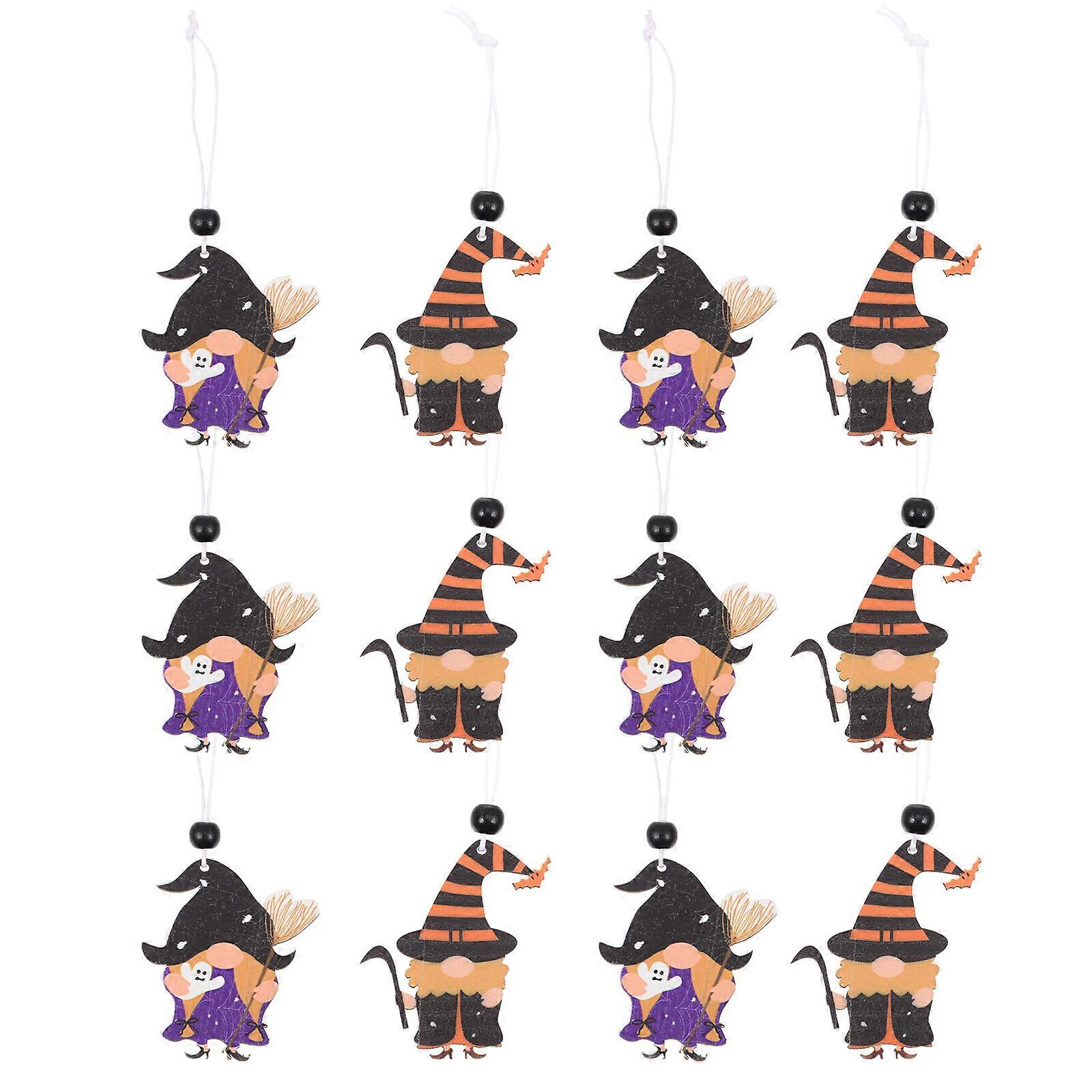 12 Pcs Halloween Gnome Pendants Hanging Gnomes Ornaments Wooden Gnome Crafts