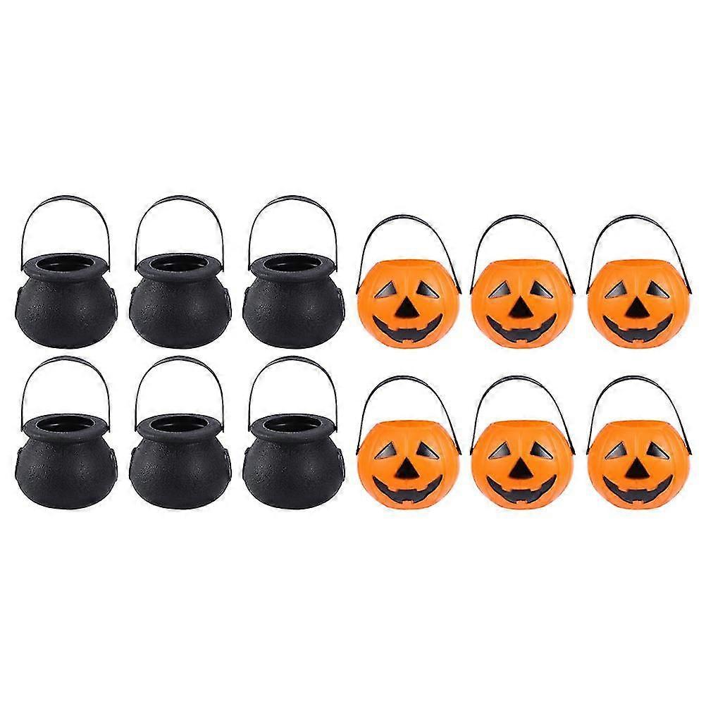 12 Pcs Black Decor Decorative Pumpkin Bucket Trick Treat Pots Candy Buckets Tote Pumpkin Pail Bucket Pumpkin Candy Basket