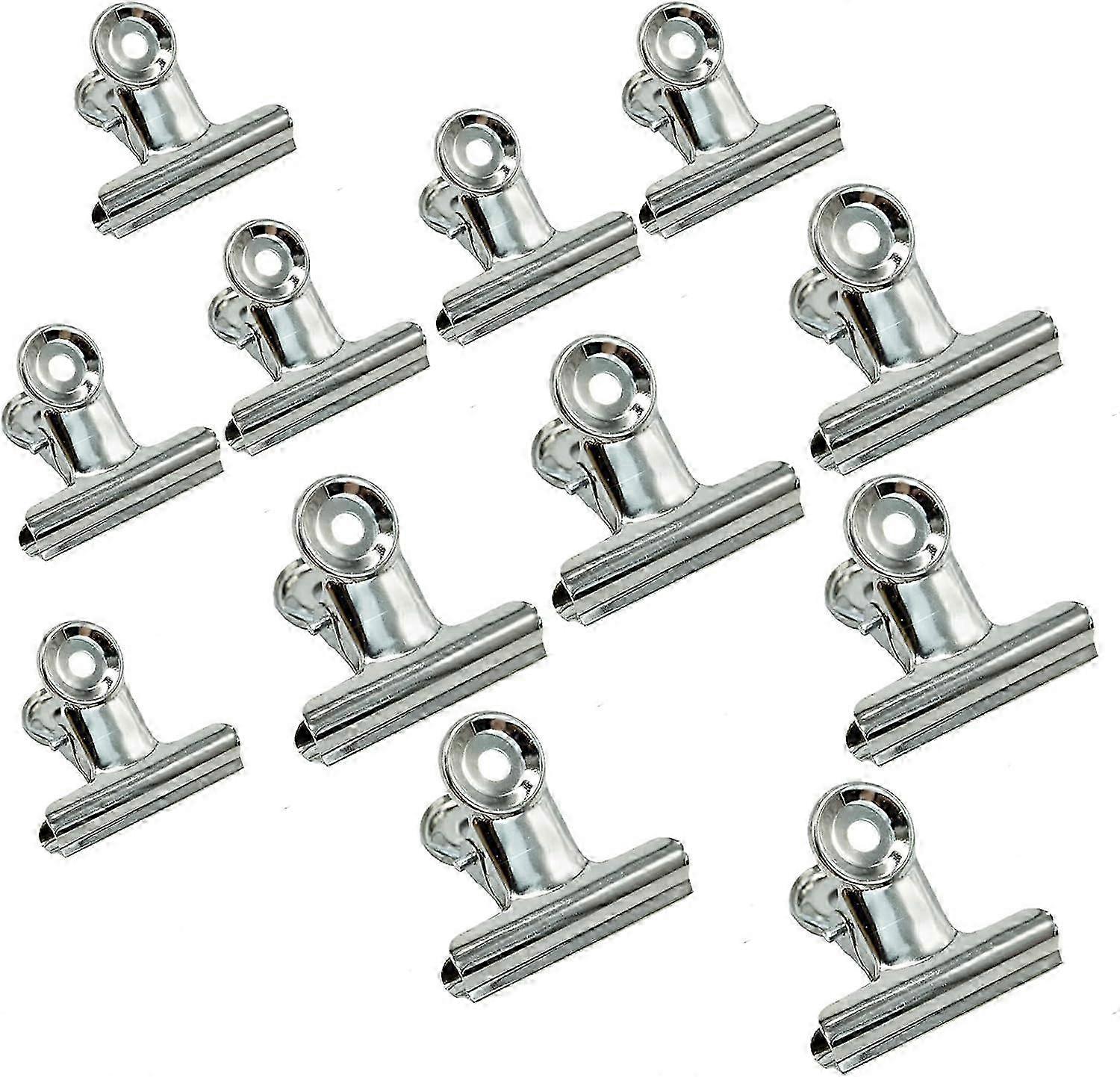 12 Pieces Bulldog Clip Metal Photo Clip, Silver (6pcs 50mm, 6pcs 63mm)--