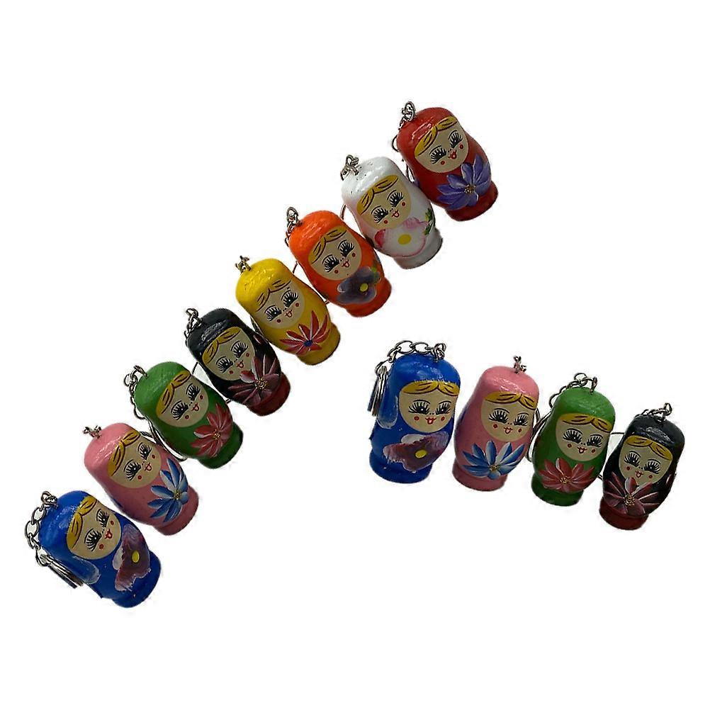 12pcs Matryoshka Keychain Retro Mini Doll Pendant Colorful Wooden Craft Decorative Key Decoration Hanging Accessory