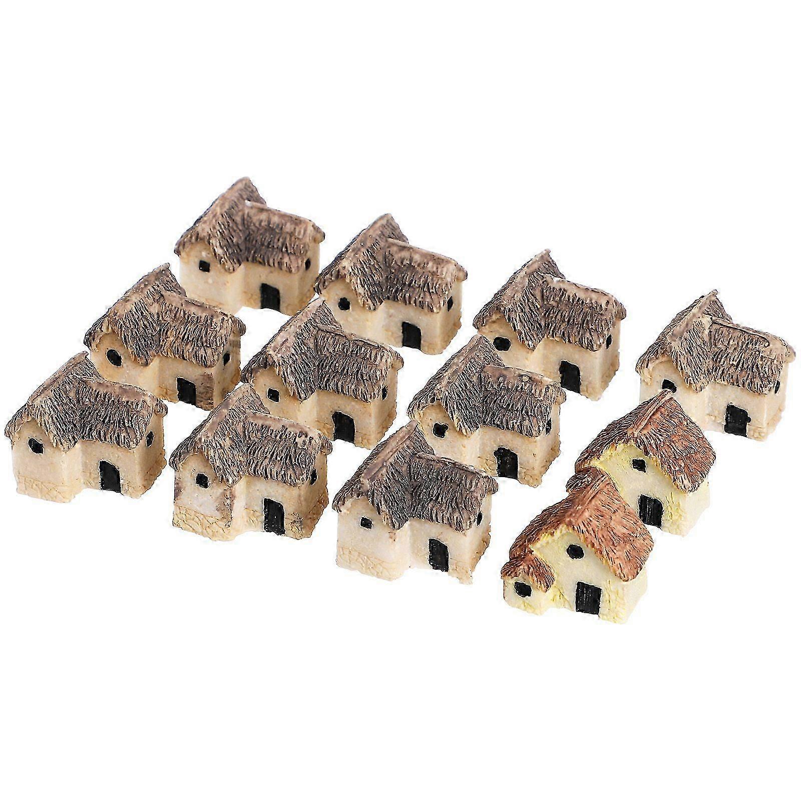 12 Pcs Mini House Shaped Ornaments Resin House Model Micro Landscaping Decor