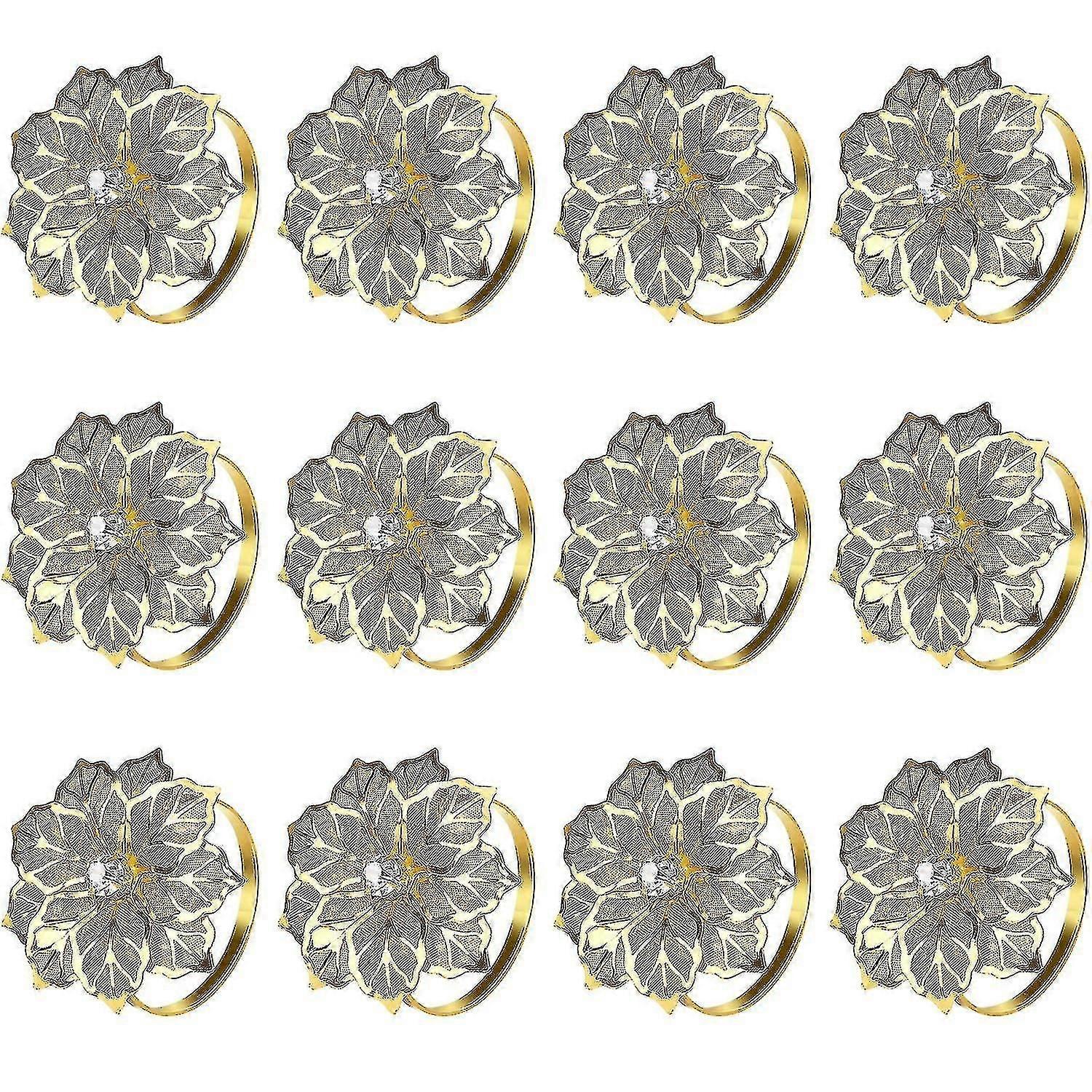 12 Pcs Hollow Out Flower Napkin Ring Holder Metal Napkin Rings For Wedding Party Holiday Banquet Dinner