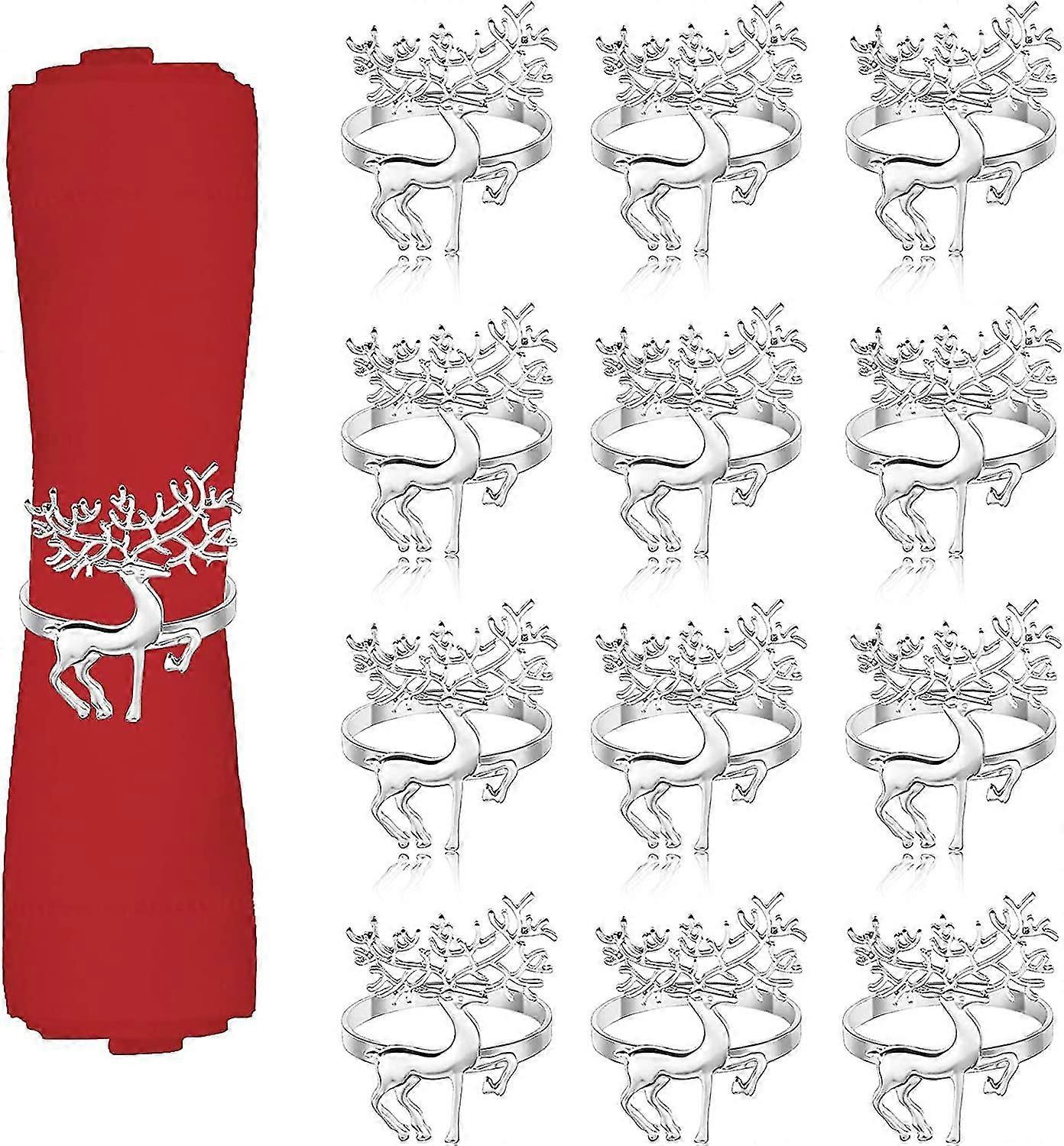 12pcs Christmas Deer Napkin Rings Set (silver)