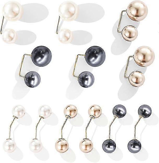 12 Pcs Double Faux Pearls Brooch Collar Clip Scarf Clip Double-headed Pearls Cardigan Brooch Necklin