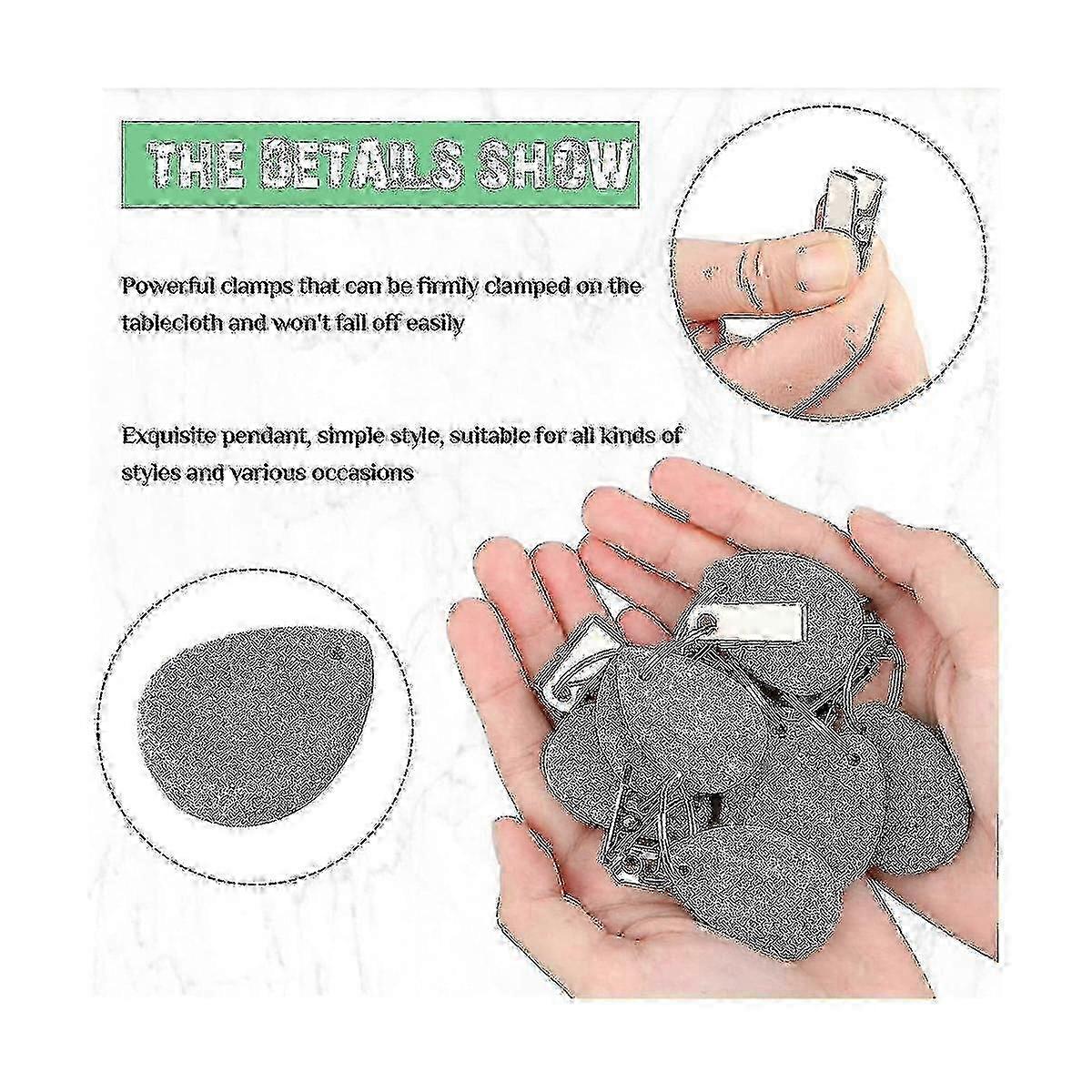 [RELIABLE MATERIAL]Tablecloth weight is mainly made of marble which is heavy enough to fix your tablecloth. It is finely polished, with surface and good texture. [FIX TABLECLOTH]The main function of The weight clip is to keep your table cloth in place, and tidy. The weight clip prevents the table cloth from being blown up by the strong wind and reduces displacement. [TEADROP-SHAPED STONE]The tablecloth weight stone is designed as teadrop which is unique and beautiful. The weight clip is also a nice and elegant decoration for tablecloths. [METAL CLIP]The clip is convenient to operate, suitable for , birthday party, wedding, outdoor picnic, dinner. Clip and connecting ring are made of metal material, wear-resistant, heavy-duty. [WHAT YOU WILL GET]You will receive 12pcs tablecloth weight, enough to meet your daily using needs. Color: Gray Material: Stainless steelandmarble Package Contents: 12 x Tablecloth Weights Only the above package content, other products are not included. Note: Light reflection and different displays may cause the color of the item in the picture a little different from the real thing. The measurement allowed error is 1-3cm. Note: Due to the light and screen setting difference, the item's color may be slightly different from the pictures. Please allow slight dimension difference due to different manual measurement.