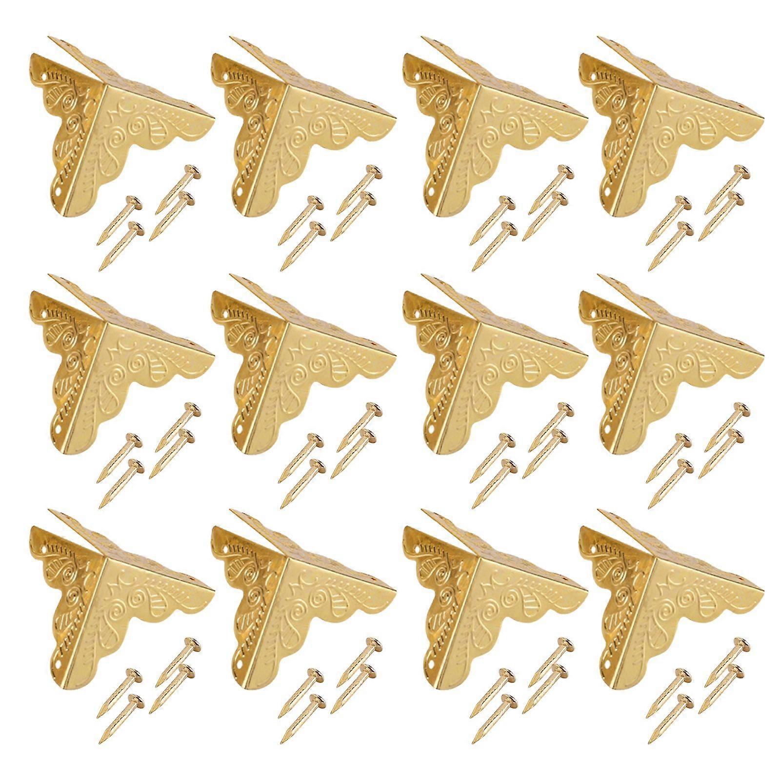 12pcs Wooden Box Jewelry Gift Case Corner Decorative Protectors Iron Edge Cover Guard Golden