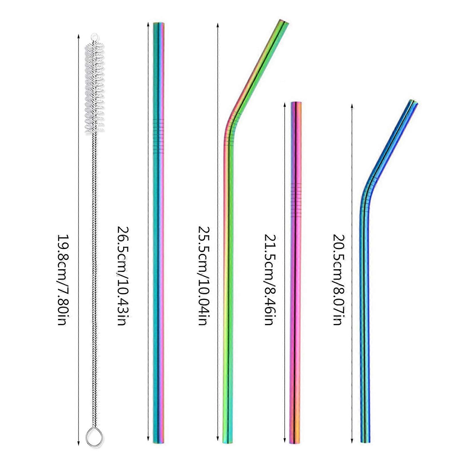 12Pcs Reusable Stainless Steel Straws with Cleaning Brushes Storage Bag Metal Drinking Straw for Tumblers Black