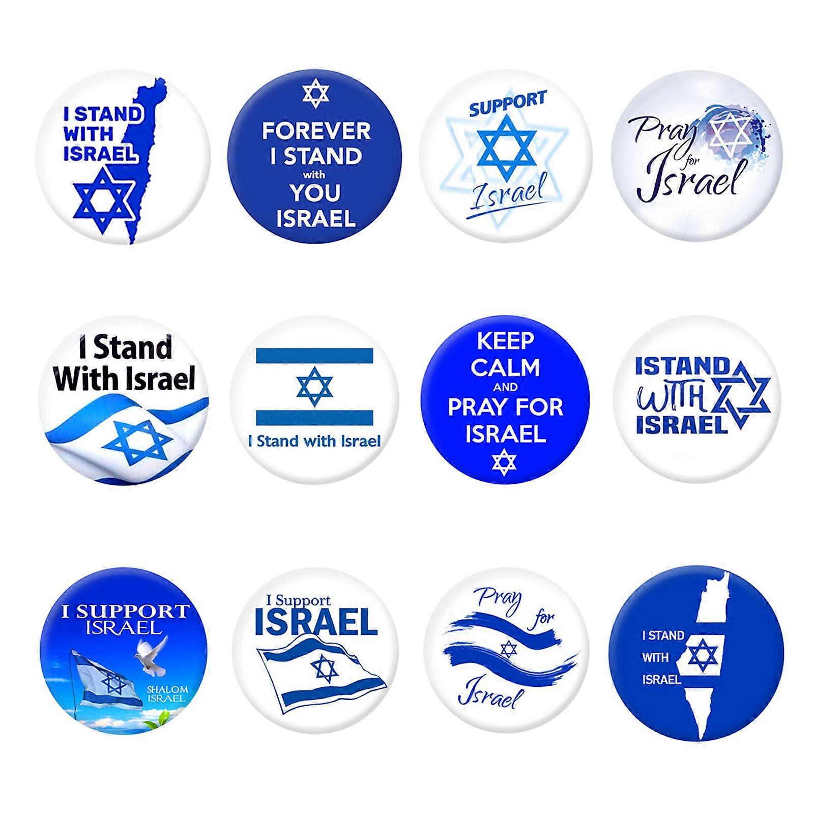 12 Pcs Small Israel Flag Lapel Pin National Emblem Round Metal Israeli Flag Brooch Badge Clothes Pin Travel Souvenir