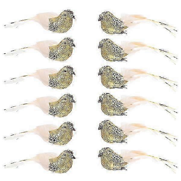 12 Pcs Hand Decor Christmas Bird Ornament Bird Miniature Decoration Feather Bird Ornament Feathered Bird Sculpture