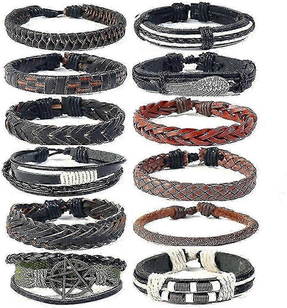 12pcs Mens Bracelets Braided Leather Wristband Punk Rope Bracelet Cuff Vintage Bracelets Wrap Set Adjustable Trendy Niuniu