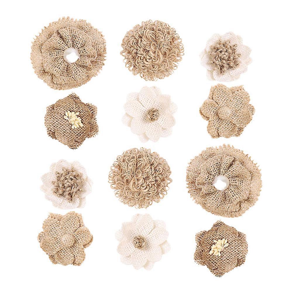 12 Pcs/2 Nativity Decor Festival Burlap Decoration Natural Burlap Flowers Linen Flowers Crafts DIY Art Craft Flowers