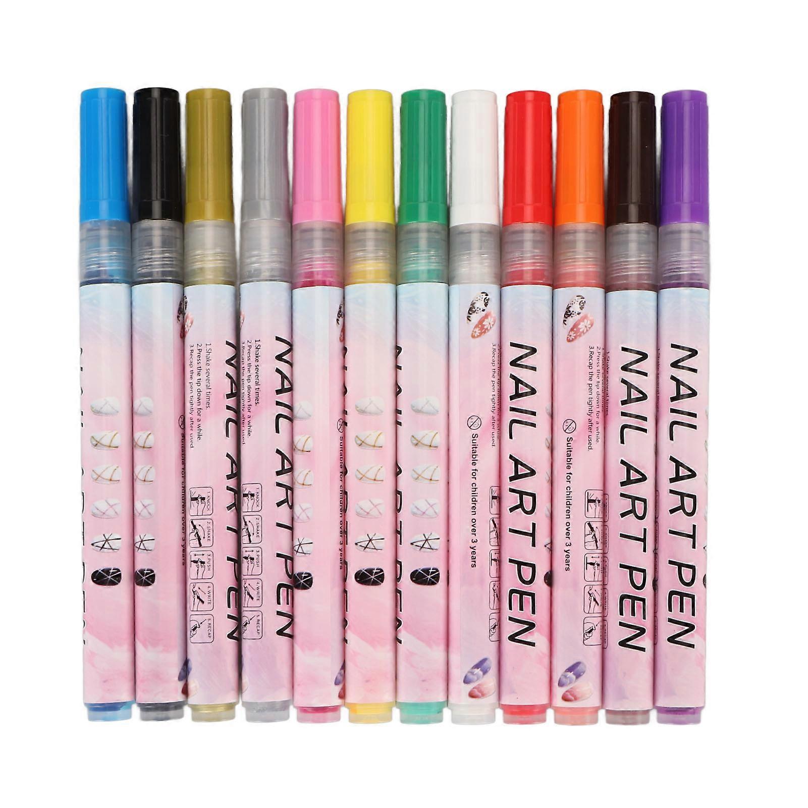 12Pcs 3D Nail Polish Pens 0.5mm Tip Bright Colors Easy to Use 3D Nail Art Pens Set for Party Family Salon