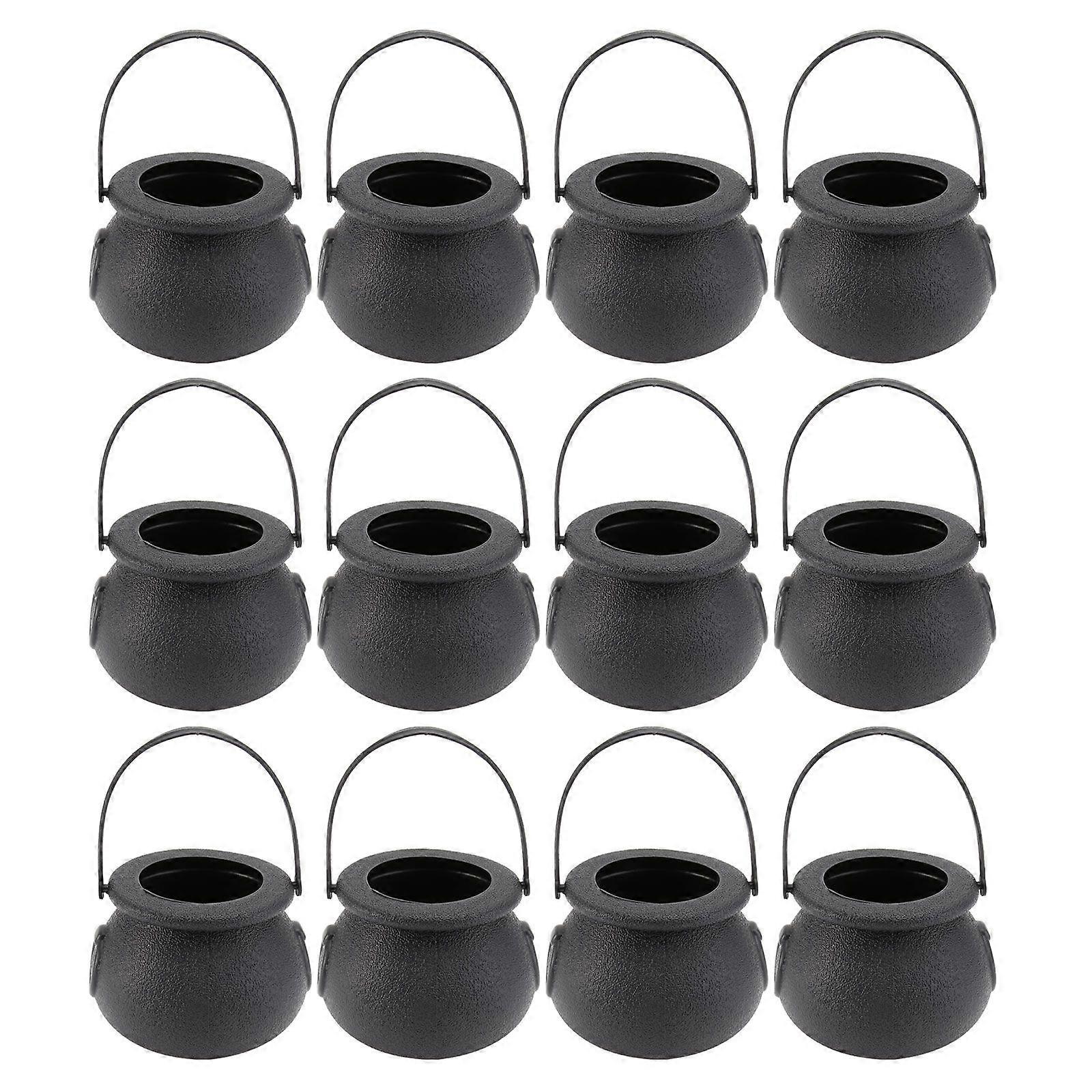 12 Pcs 5x7cm Candy Jars Kettles Witch Cauldron Handheld Candy Bucket for Halloween Party Hanging Props (Black)