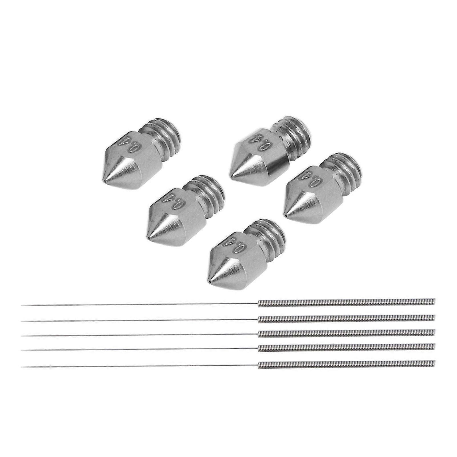 12Pcs MK8 Extruder Nozzle Cleaning Needle Kit Robust Nozzle Needle for 3D Printer 0.4mm Diameter M6 Male Thread Item Type: Extruder Nozzle Cleaning Needle Kit Material: Hardened steel, stainless steel Nozzle Size: Approx. 13 x 6mm/0.50 x 0.24in Outlet Hole Diameter: Approx. 0.4mm/0.02in Cleaning Needle Length: Approx. 70mm/2.8in Input Diameter: Approx. 1.75mm/0.07in Output Diameter: Approx. 0.4mm/0.02in Thread Length: Approx. 5mm/0.20in