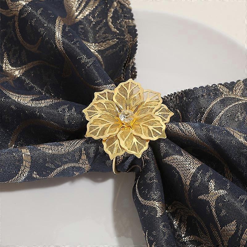 Set of 12 Alloy Napkin Rings with Hollow Out Flower Napkin Ring Holders for Wedding Party Holiday Ba