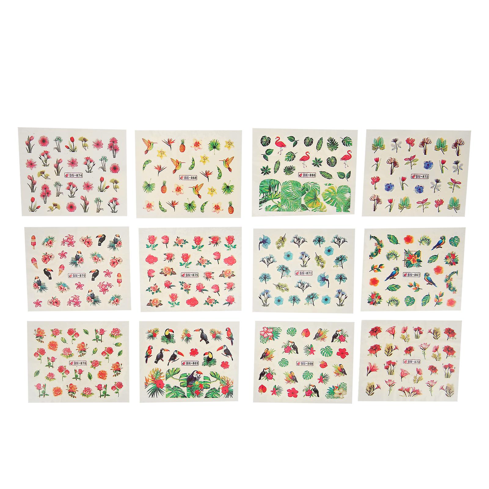 12 sheets nail art stickers, natural plants, water transfer decals.