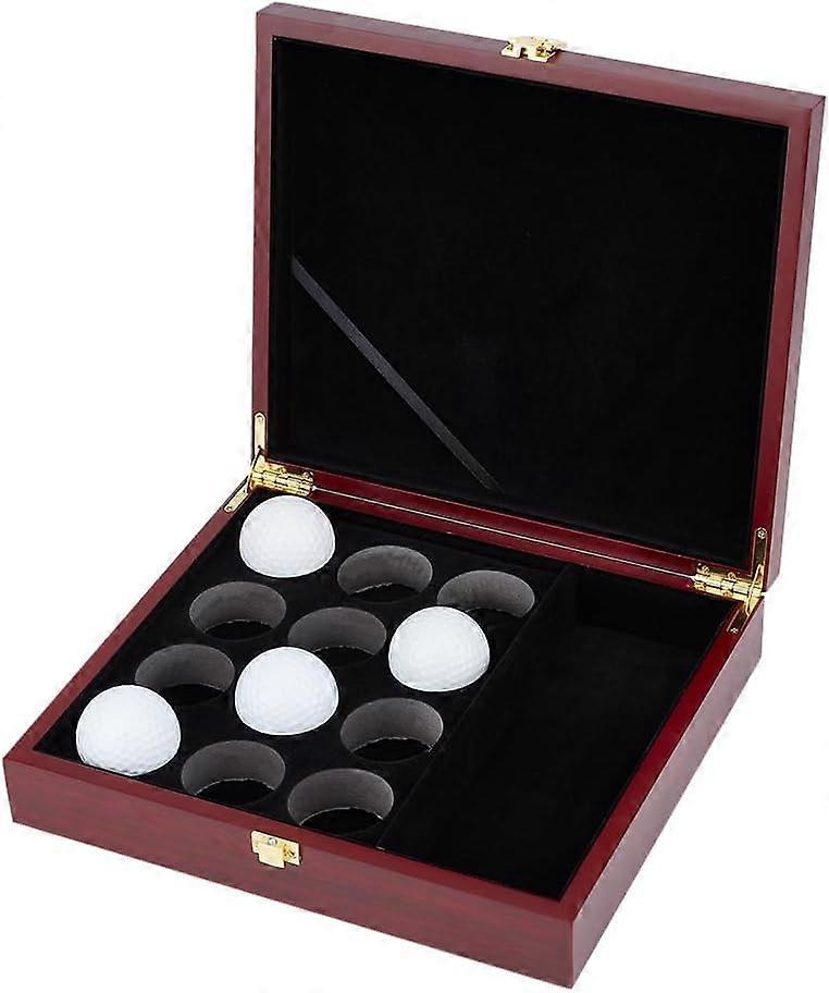 12-Hole Golf Ball Display Case 10x8.7x2.4 inch Golf Ball Box with Velvet and Sponge Inside Dark Red Wooden Golf Balls Protective Case Golf Rack Cabine