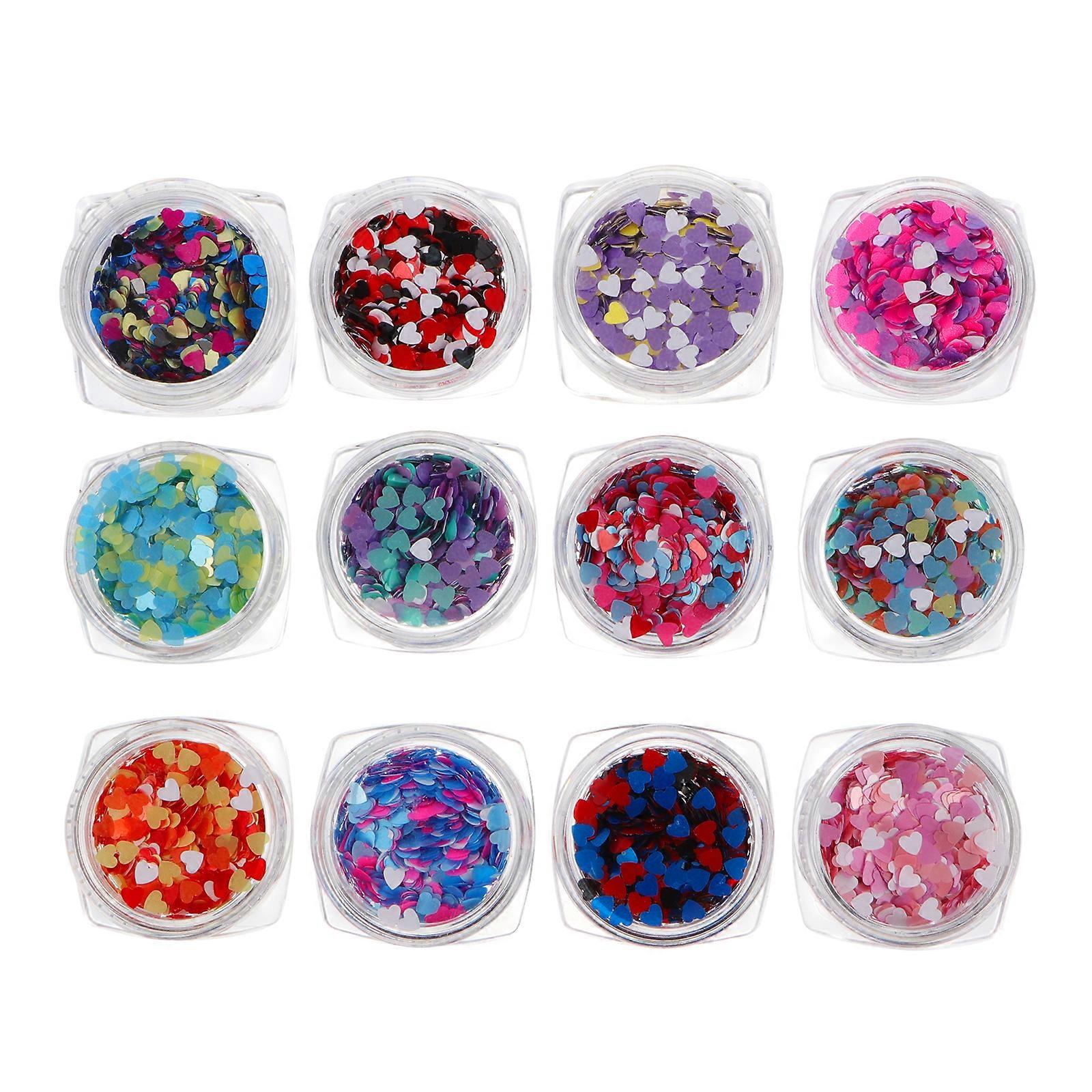 12 Boxes Manicure Glitter Sequin Nail Sticker Heart-shaped Nail Art Decoration
