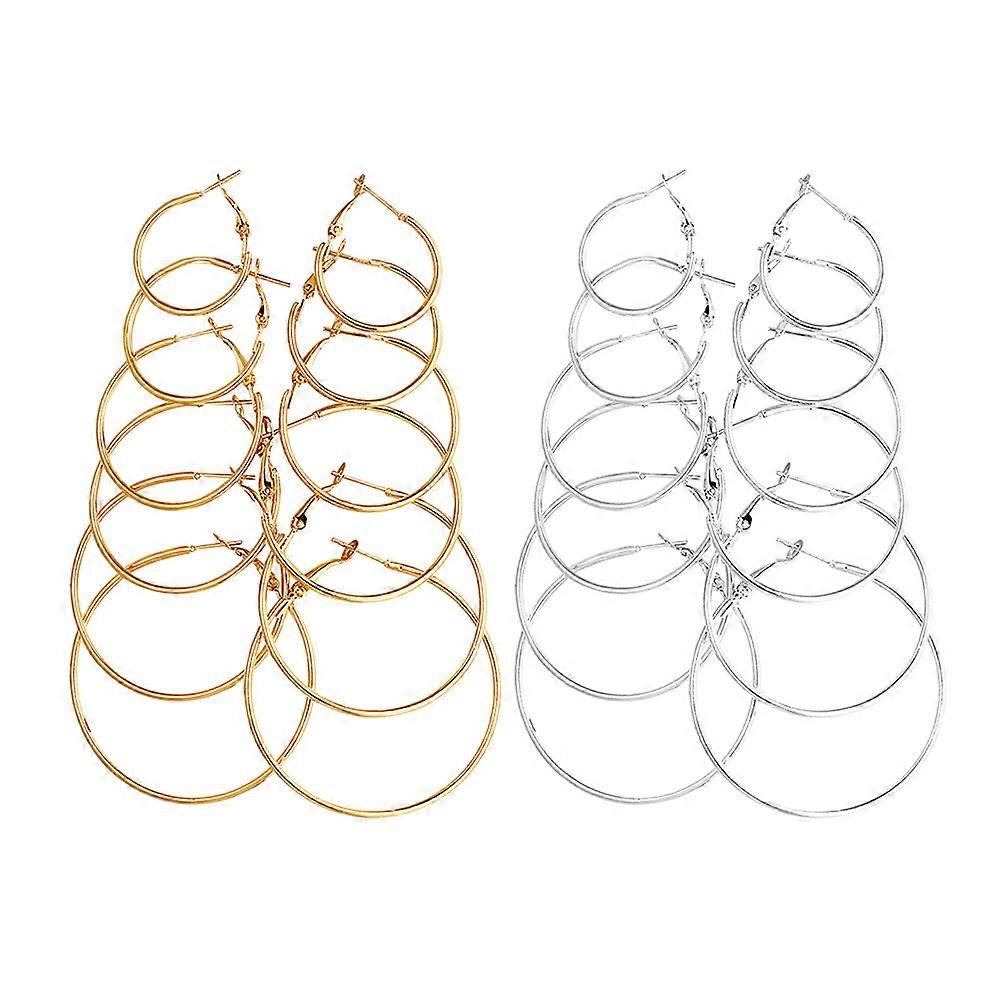 12 Pairs of Silver Alloy Simple Big Earrings Set for Decoration Lightweight Jewelry