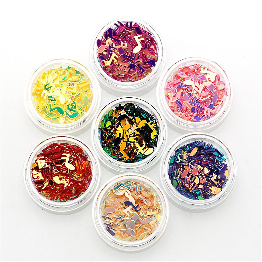 12 colors glitter music notes shape decoration mixing color DIY nail art stickers sequins
