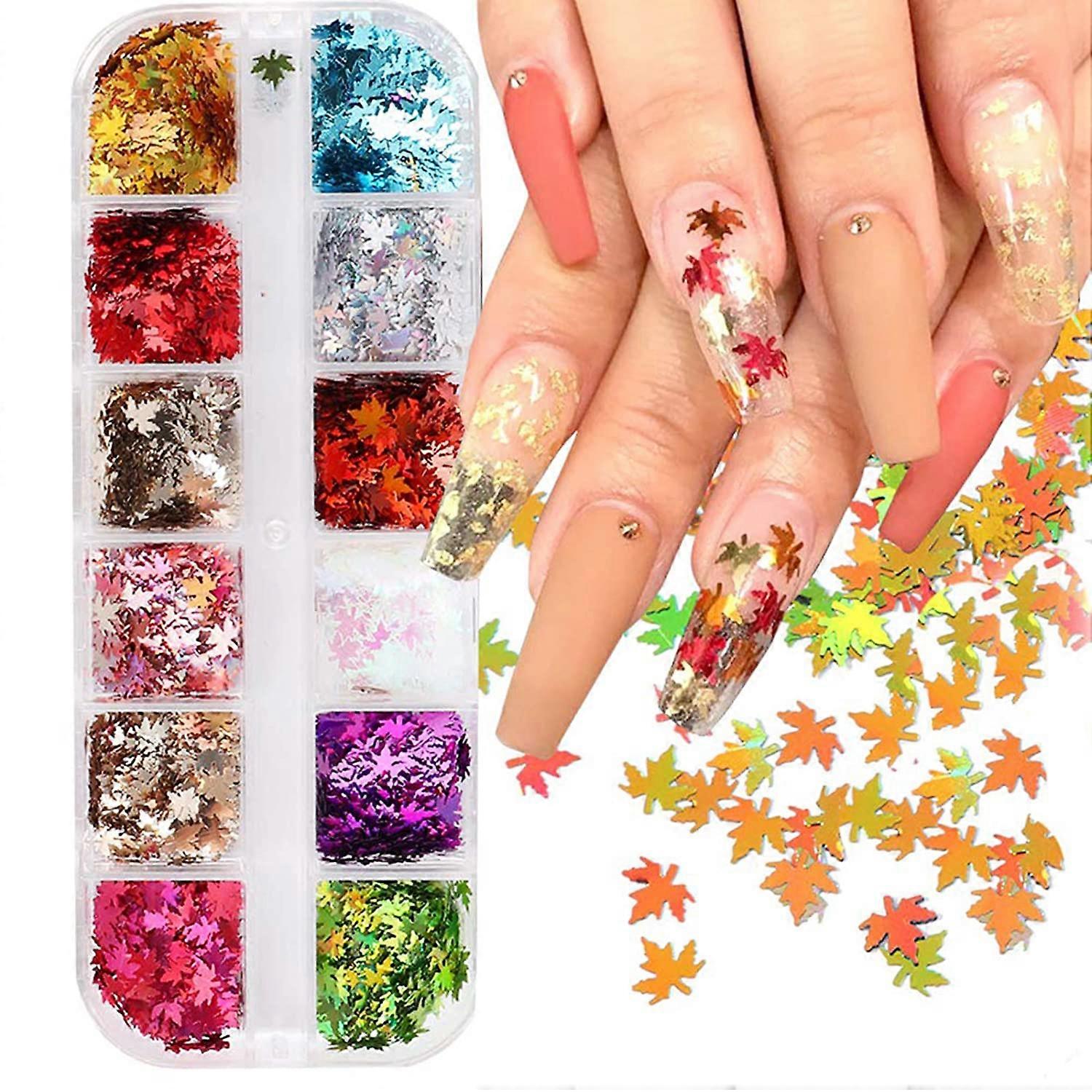12 Colors Maple Leaf Glitter Nail Sequins Fall Nail Art Stickers 3D Autumn Maple Leaves Glitter Nail Art Flakes Gold Fall Glitters Nails Supply Design
